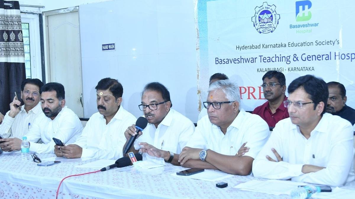 एचकेई सोसाइटी के अध्यक्ष शशिल जी. नमोशी कलबुर्गी के बसवेश्वर अस्पताल में एक संवाददाता सम्मेलन को संबोधित करते हुए। | फोटो साभार: अरुण कुलकर्णी