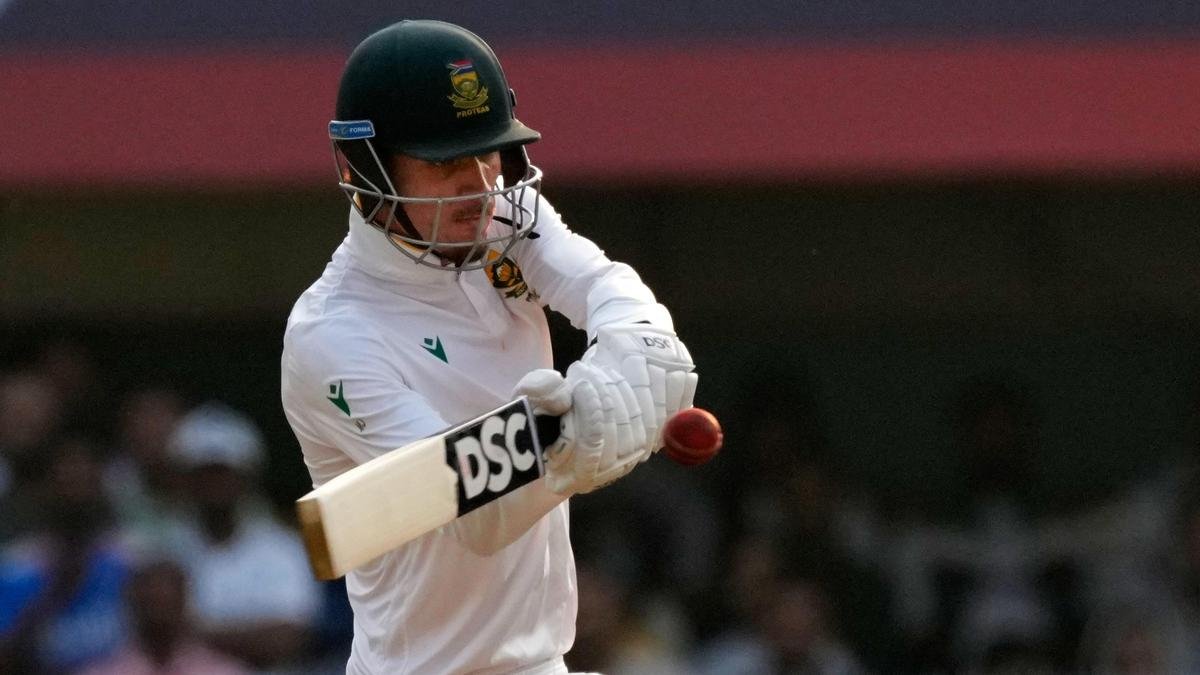 22 नवंबर, 2025 को गुवाहाटी में भारत और दक्षिण अफ्रीका के बीच दूसरे क्रिकेट टेस्ट मैच के दूसरे दिन दक्षिण अफ्रीका के मार्को जानसन एक शॉट खेलते हैं। फोटो साभार: एपी