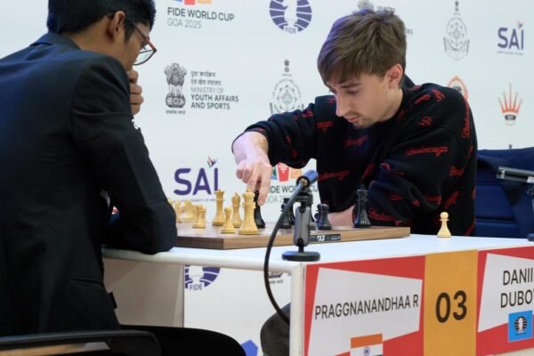 डेनियल डुबोव ने दूसरे टाई-ब्रेक गेम में तीसरी वरीयता प्राप्त प्रागनानंद को काले मोहरों से चौंका दिया। | फ़ोटो साभार: FIDE पिछले संस्करण में उपविजेता रहे, आर. प्रगनानंद ने शतरंज विश्व कप में सबसे मजबूत पसंदीदा खिलाड़ियों में से एक के रूप में शुरुआत की। इस साल भी उसके कुछ शानदार नतीजे आए हैं, लेकिन…